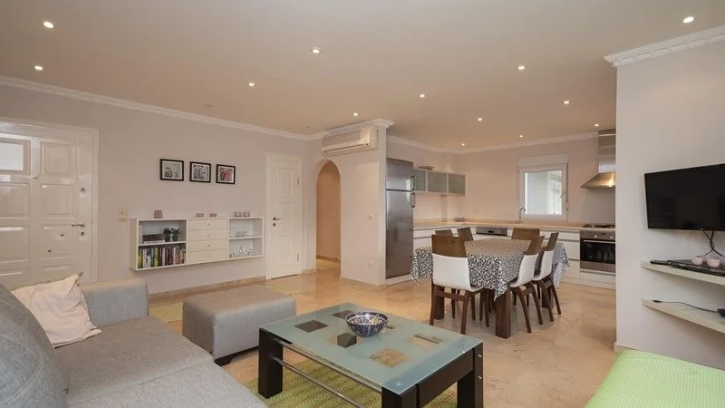 With panoramic views of the Mediterranean and Alanya Castle, this fully furnished 2+1 apartment in Cikcilli offers a calm, elevated lifestyle just minutes from the city center. Spread over 100 m², the home combines comfort and style with a spacious living area, modern open kitchen, and a sea-facing balcony perfect for quiet evenings.