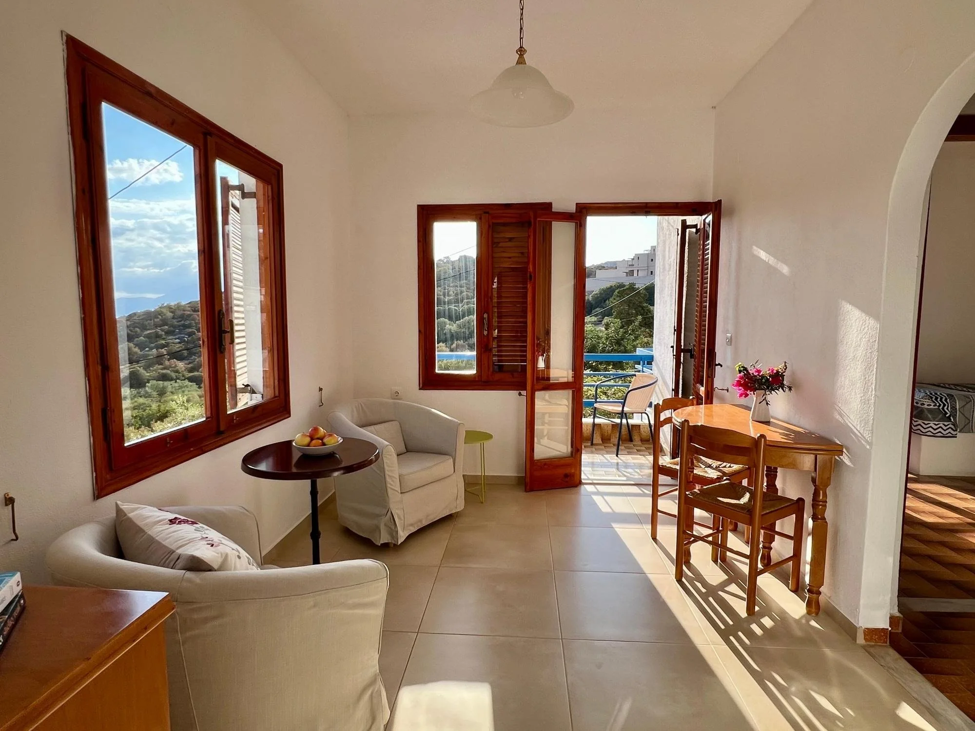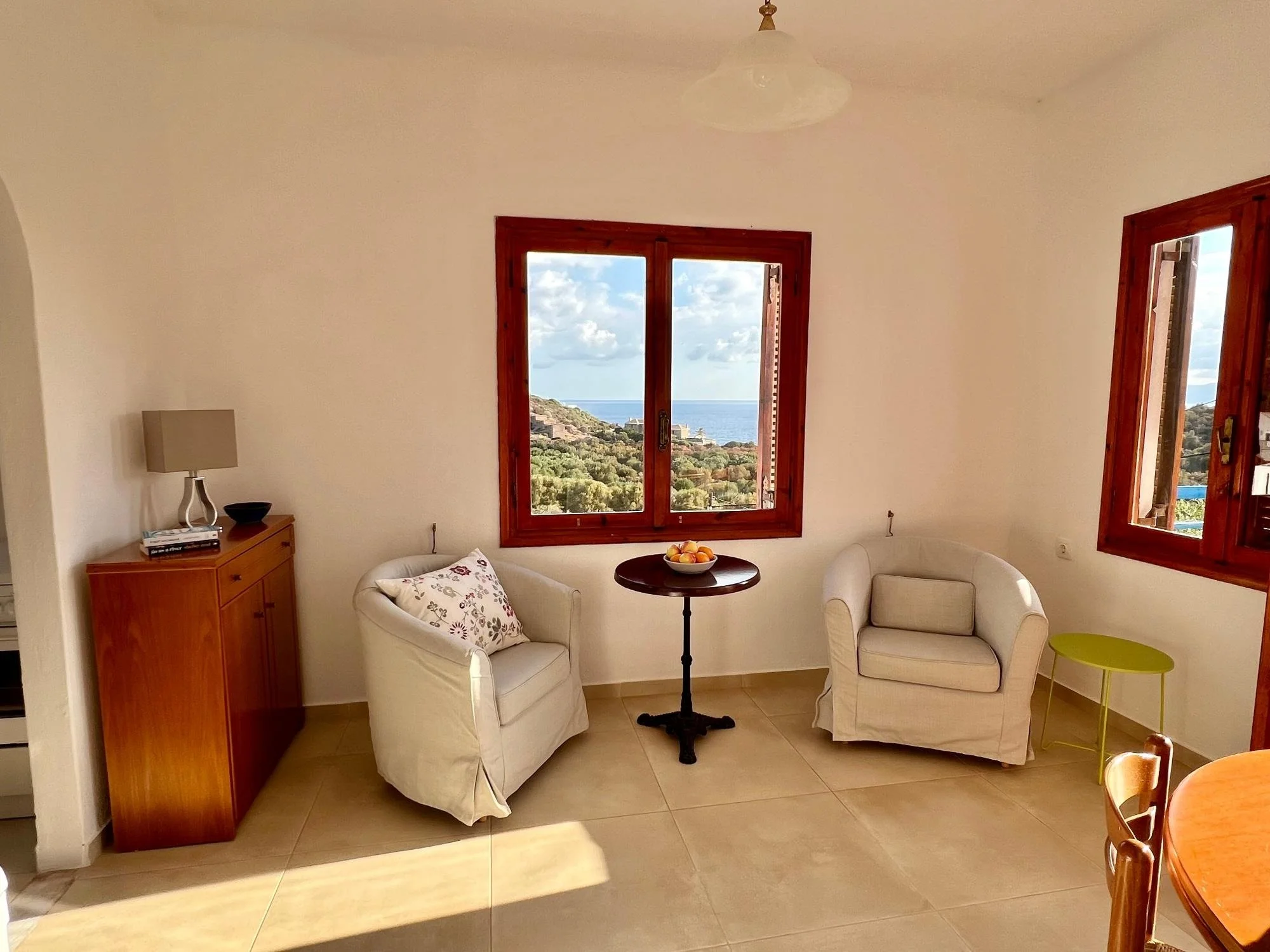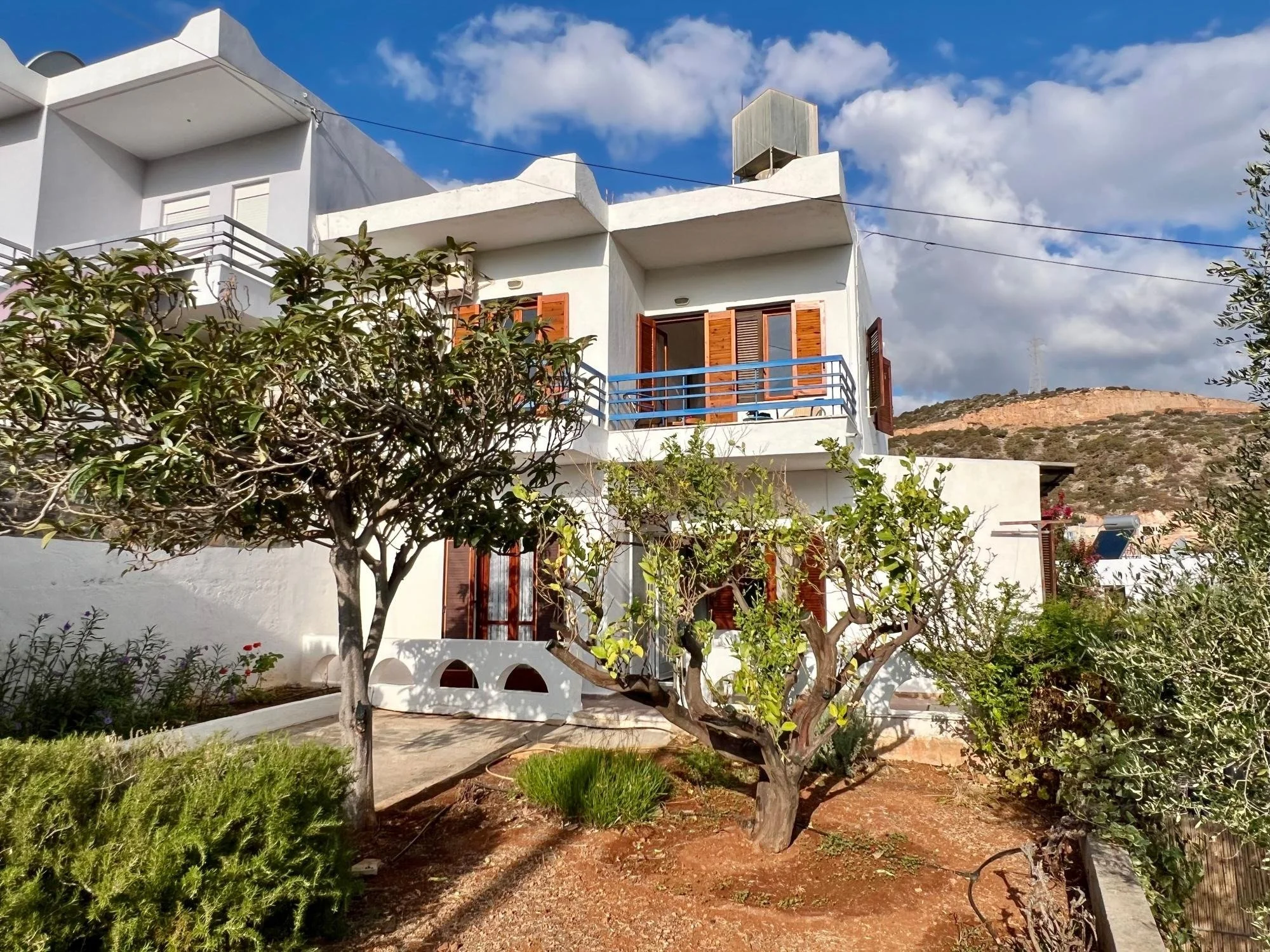 Just south of Agios Nikolaos in peaceful Vathi, this sea-view property offers two light-filled apartments on a lush 1,000 m² plot. Surrounded by olive trees, fruit gardens, and open sky, it’s a place where indoor comfort meets Mediterranean ease. With flexible living spaces, private terraces, and sweeping views, it’s ideal for sharing, relaxing, or renting.