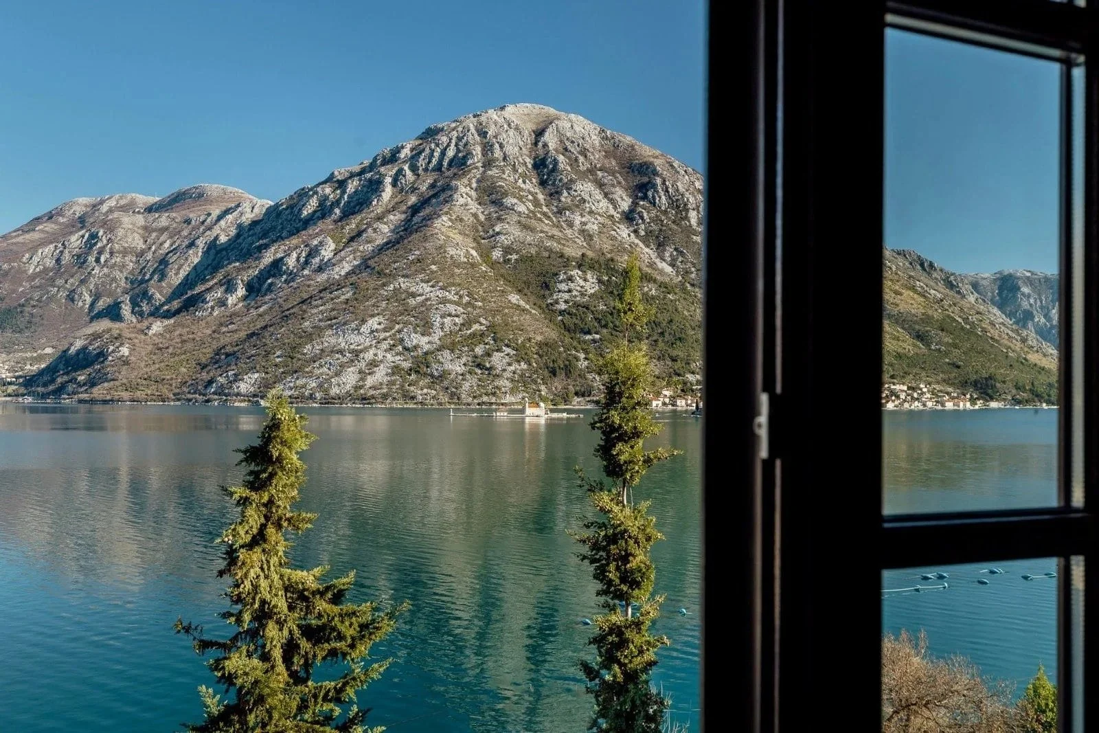 Perched on the edge of the Adriatic in the tranquil village of Kostanjica, this refined two-bedroom apartment offers front-row views of the Bay of Kotor and the island of Gospa od Škrpjela. Inside, generous living spaces open onto a sea-facing terrace—perfect for slow mornings or sunset unwinding. With exclusive access to a private beach, a seawater pool, tennis court, and clubhouse, this Mediterranean-style residence is as much a retreat as it is a home.