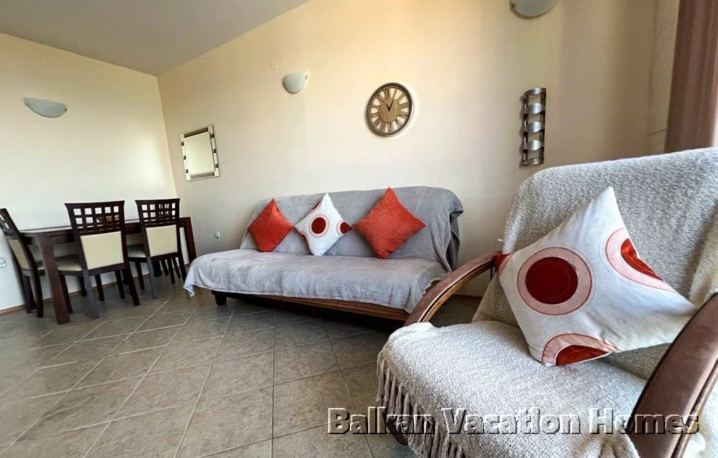 A calm seaside escape where comfort meets coastal simplicity. This bright apartment in Ikantalaka offers an easy rhythm of life, with sunlight streaming through its rooms and sea views greeting you from the terrace. Thoughtfully designed for peaceful days and slow evenings, it sits within a well-kept complex complete with a mineral-water pool, fitness area, and a relaxed restaurant setting. Just steps from the beach and a short drive to Balchik, it’s the kind of place that feels effortlessly like home by the sea.