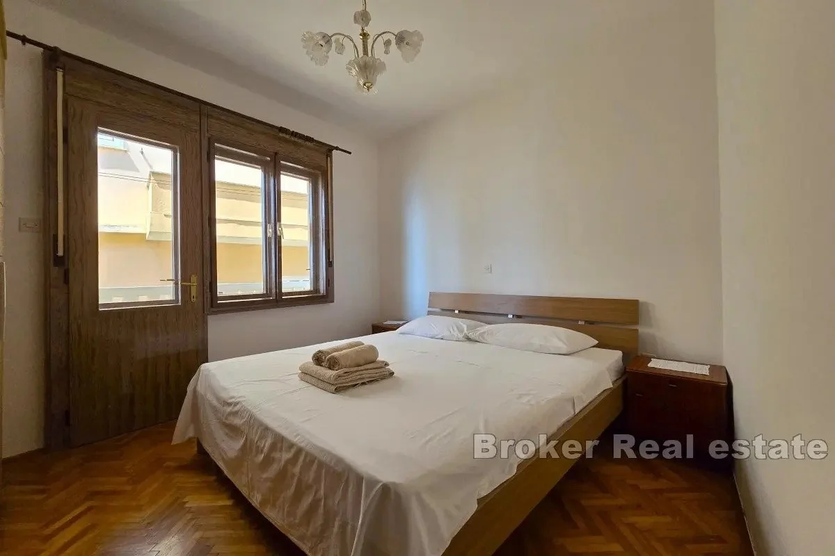 The ground floor requires a higher level of renovation than the first floor, which is successfully used for tourism purposes. Each apartment has its own spacious terrace with stunning sea views. The house has direct access to a pebble beach and is just a short walk from amenities such as shops, bakeries, restaurants, cafes, and a post office.