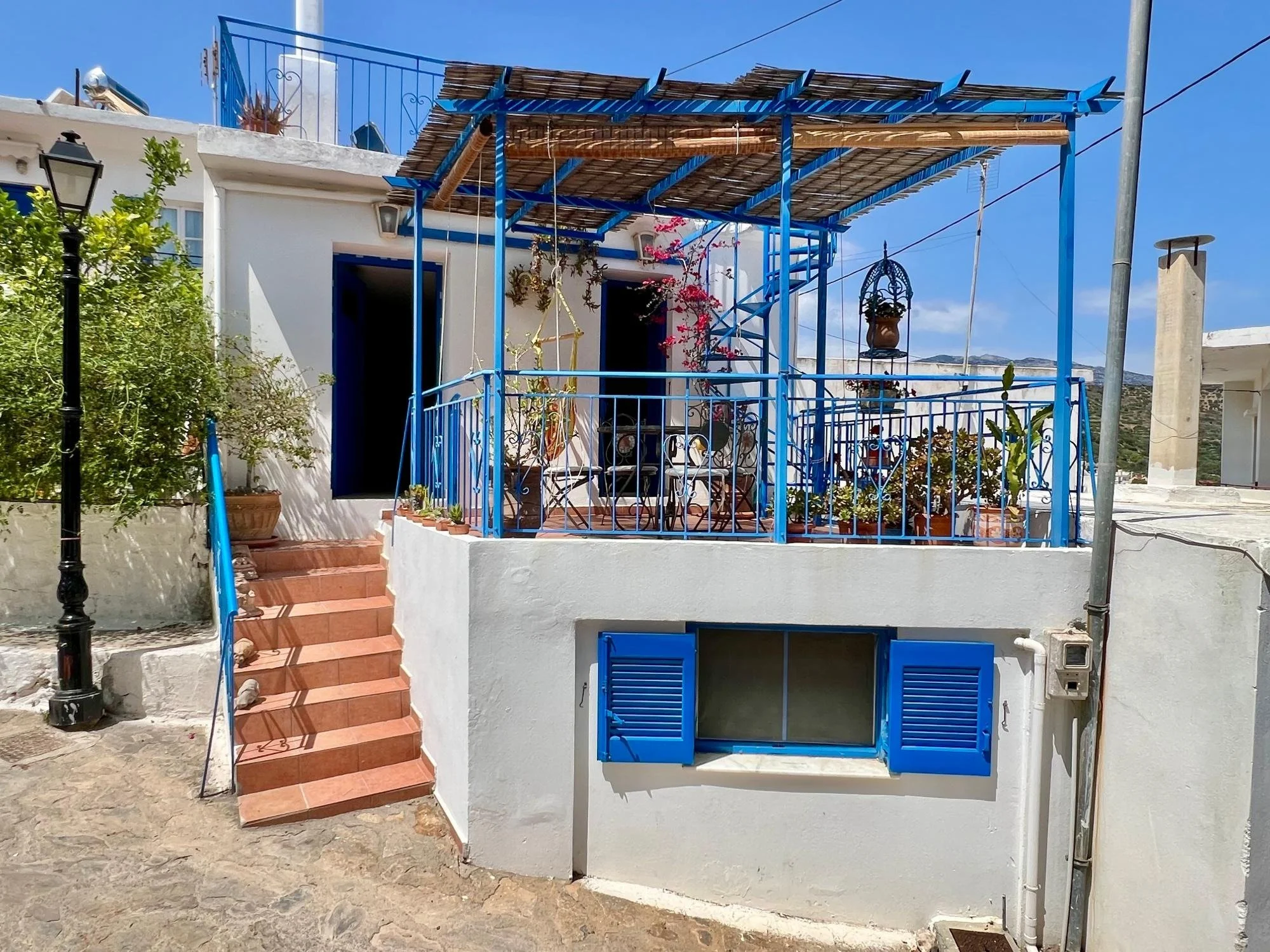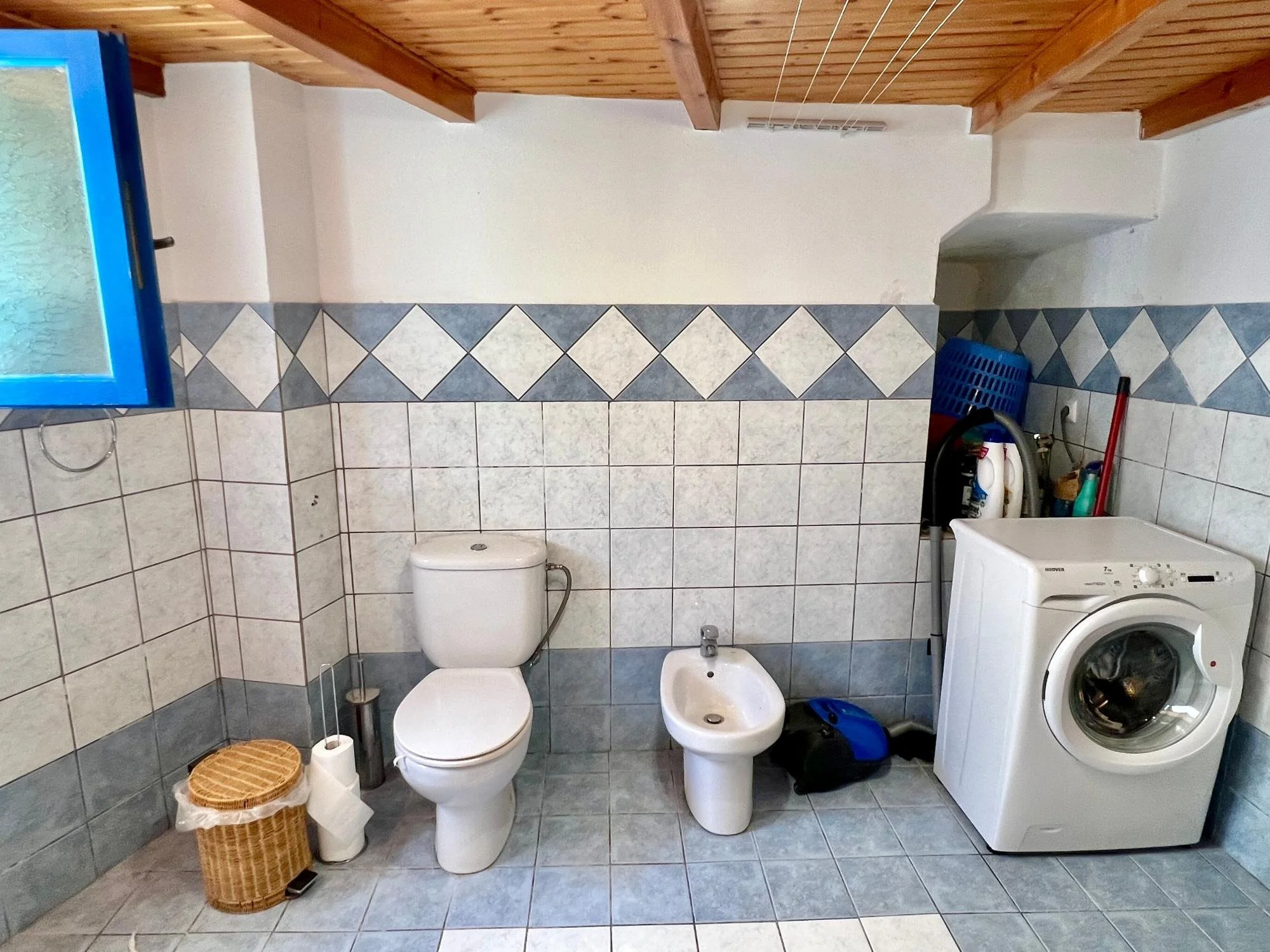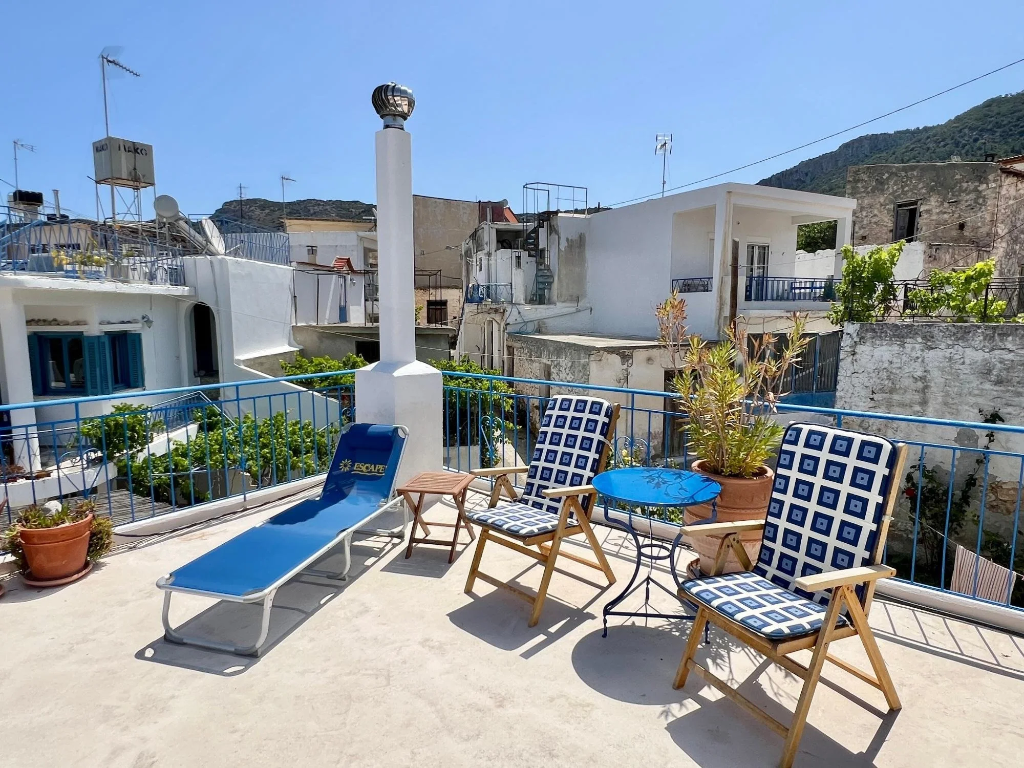 From the entrance terrace, there is a metal staircase leading to the roof terrace of the house with lots of space and beautiful views of the village, the mountains and the sea from a distance.