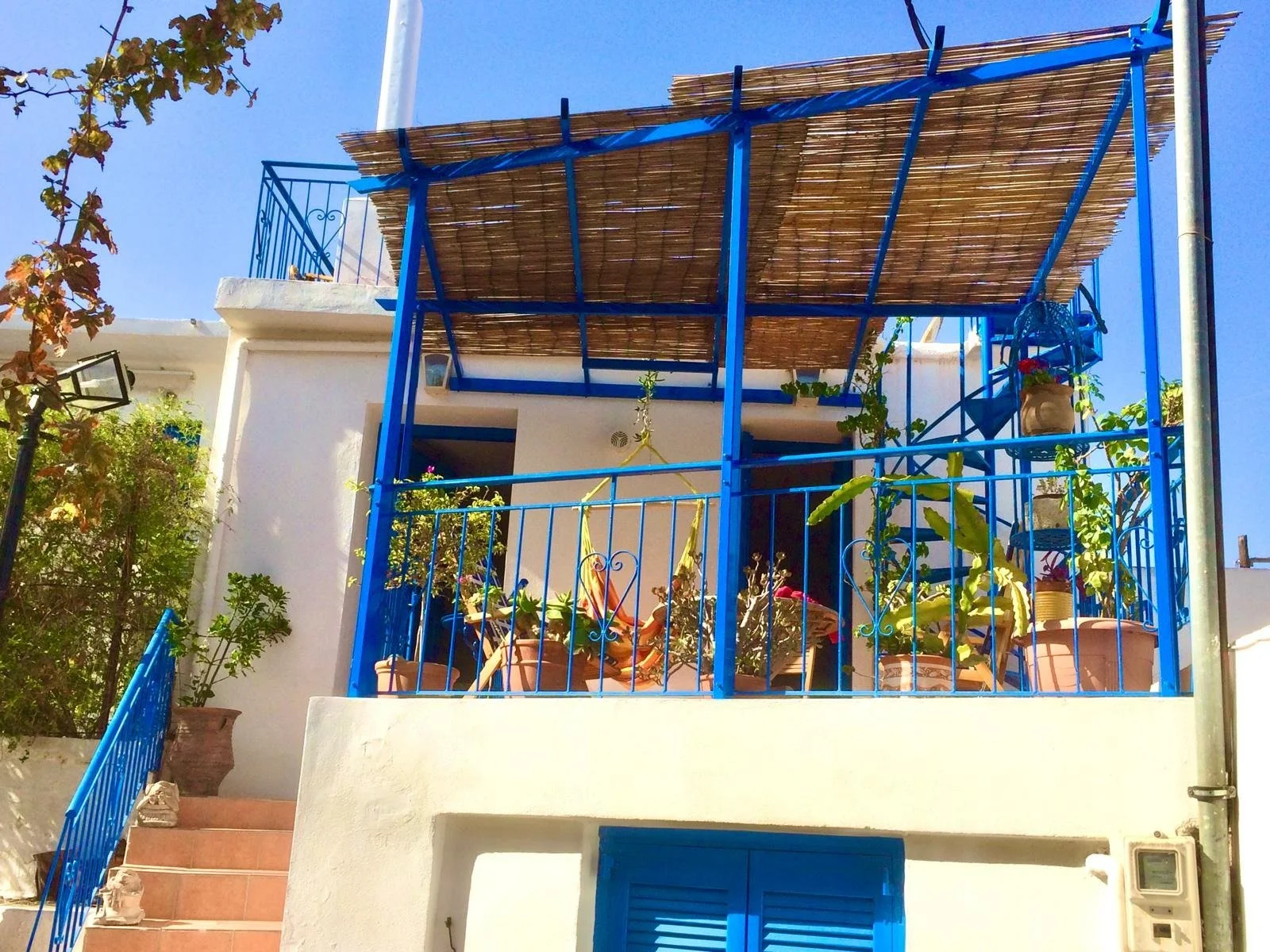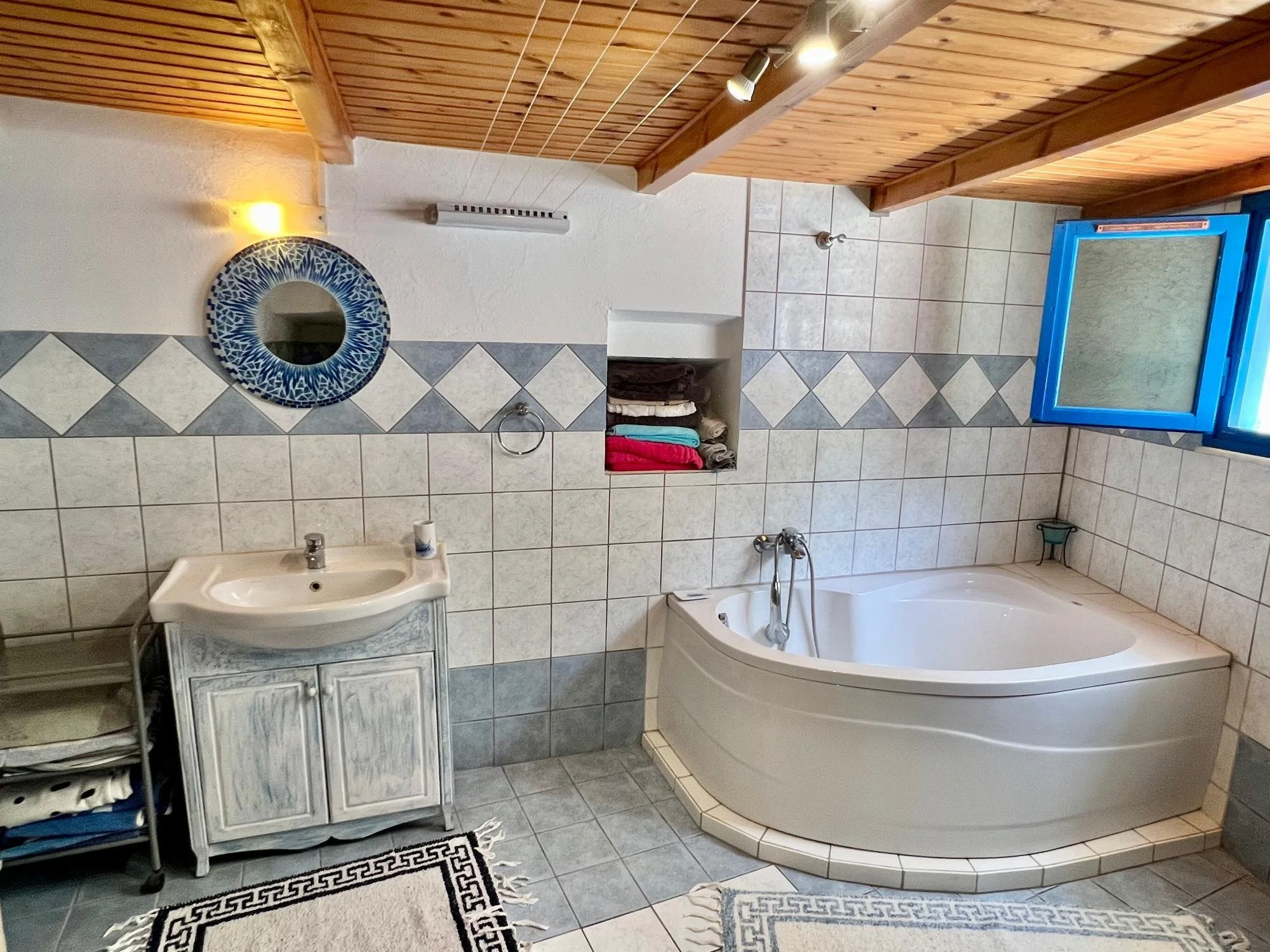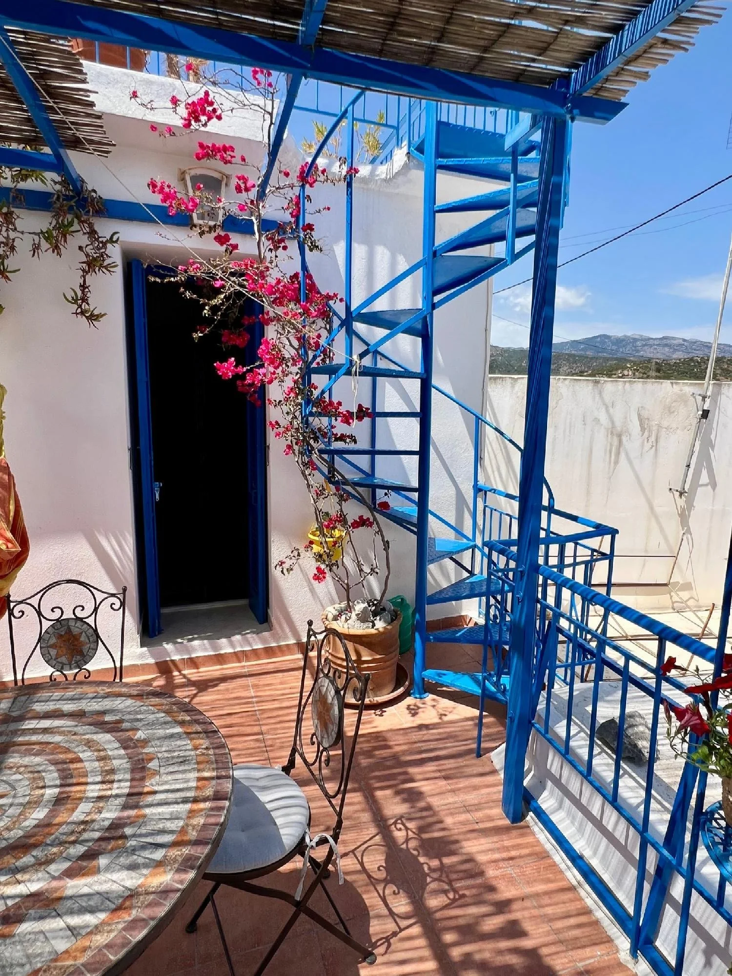 From the entrance terrace, there is a metal staircase leading to the roof terrace of the house with lots of space and beautiful views of the village, the mountains and the sea from a distance.