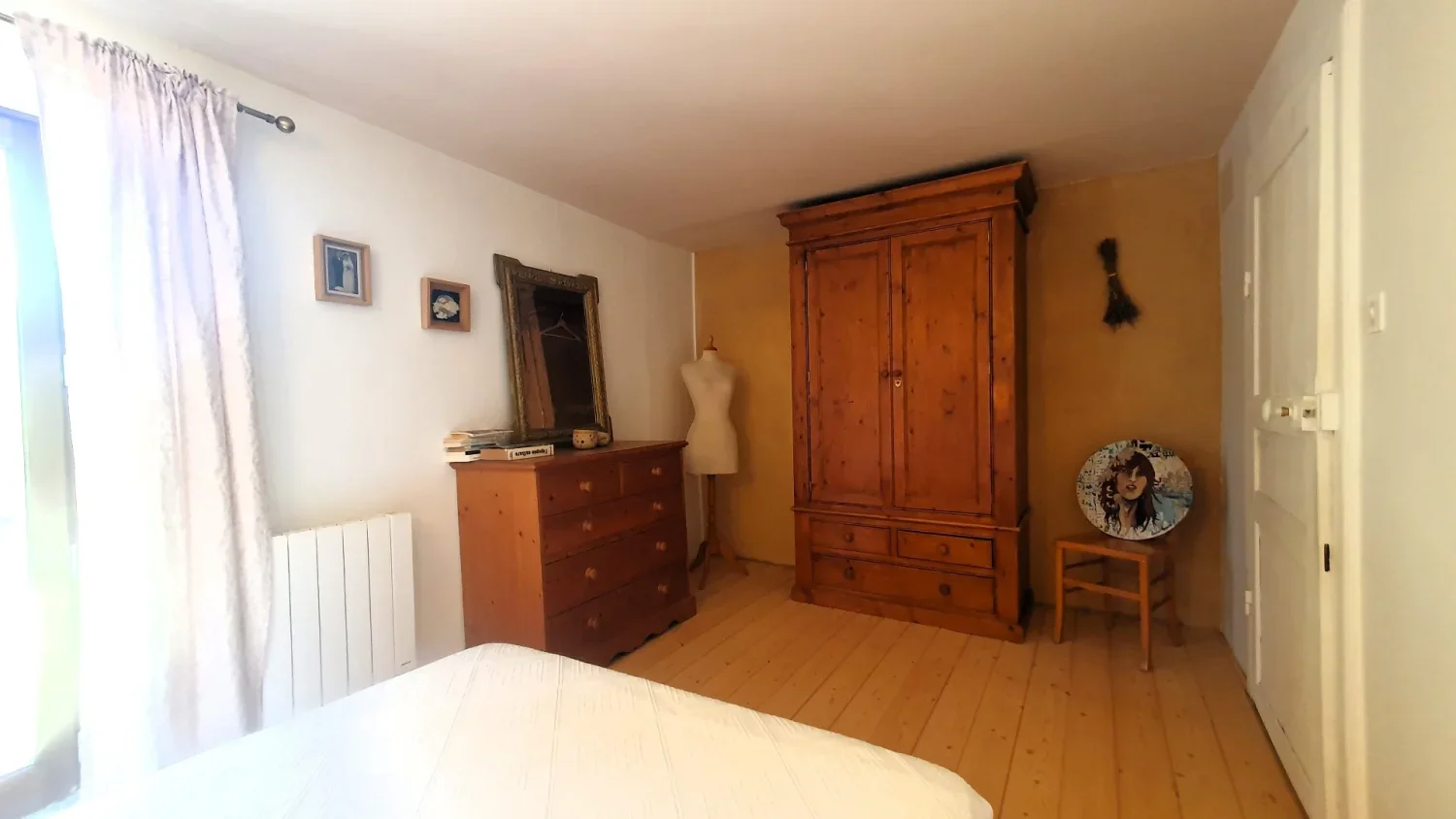 This stone house is located in a small, quiet hamlet. Its adjoining barn (26 m² x2) would allow for an extension or the creation of a gîte. The house has good exposure and a flat plot. The house is entered through a beautiful, bright kitchen with travertine flooring. Upstairs is a living room. A hallway leads to two bedrooms as well as a bathroom and separate toilet. From this hallway, an opening to the barn floor could be created. On the upper level, there is an additional bedroom and access to the attic. Two cellars are accessible from the outside. The plot of over 2000 m² is pleasant, suitable for a swimming pool, and has a carport.