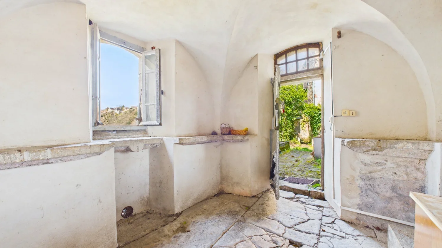 Cassagne-Comtaux area, come and discover this house to renovate with a living space of approximately 92 m² + an outbuilding to renovate, with its land of 717 m². Located in a small hamlet 8 minutes from all amenities, this house benefits from a splendid view of the Clairvaux valley of Aveyron. The house consists on the ground floor, of a vaulted entrance of approximately 11 m², opening onto a living room equipped with a canton + kitchen of approximately 37 m². From the entrance you will access a bathroom of 3.6 m² and a room serving as a laundry room of 4.7 m² opening onto the terrace. On the first floor is a renovated bedroom of approximately 15 m², a recent bathroom of 4.5 m², and a second attic bedroom of 11 square meters. In the basement, you will find two cellars of 11 and 23 m². Below the land, accessible by a path, is an outbuilding to be completely renovated, leaving room for an additional project. There is no heating system, therefore not subject to the DPE (Energy Performance Certificate). The house is equipped with a domestic hot water tank, double glazing, and single glazing. The slate roof is in good condition; however, it will require revision and repair on the adjoining part. The septic tank is not up to standard. A study is possible by our work selection group to assist you with your development project.