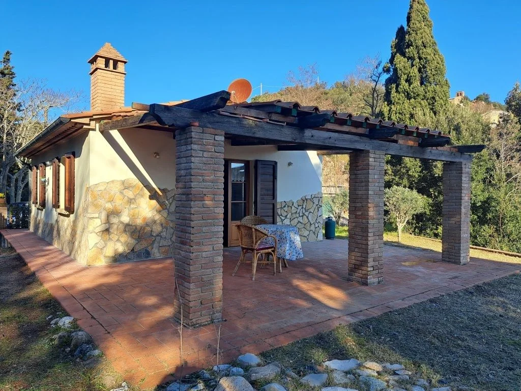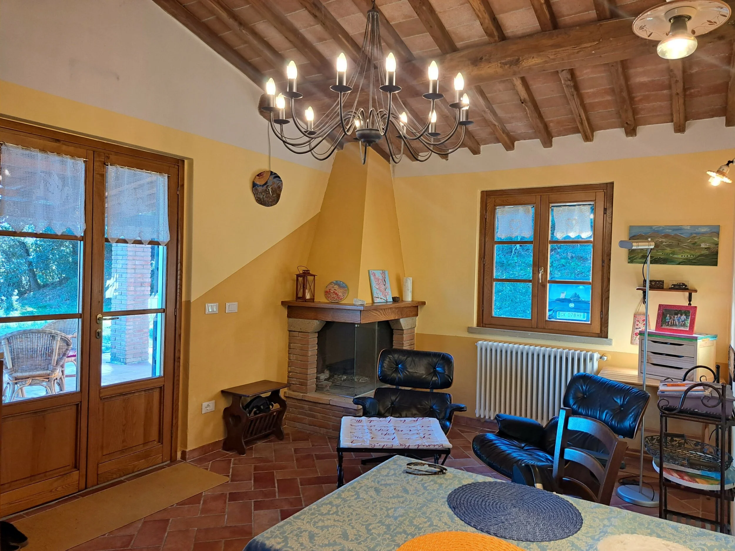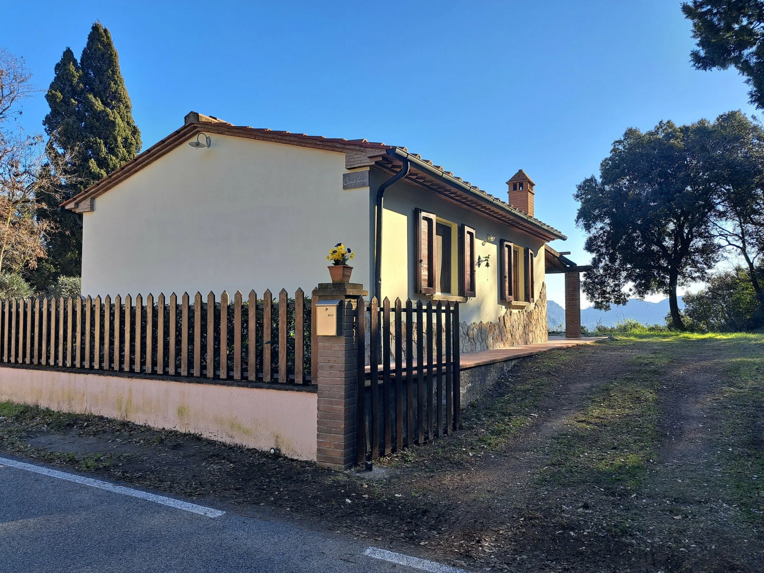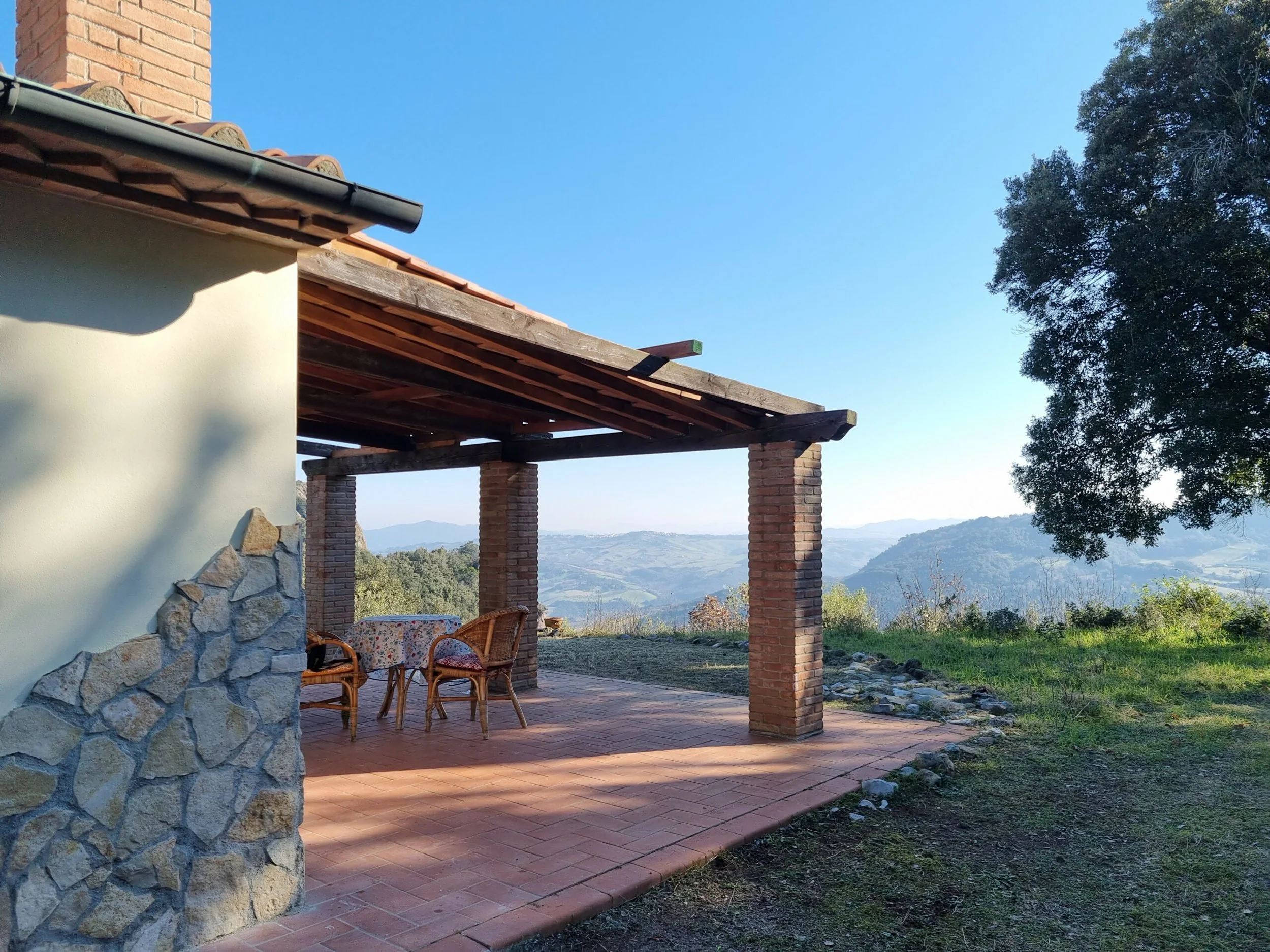 In the Pomarance countryside, at the edge of a small hamlet, perched on a hill, in a fantastic panoramic location, for sale independent villa with 1.7 ha of land.