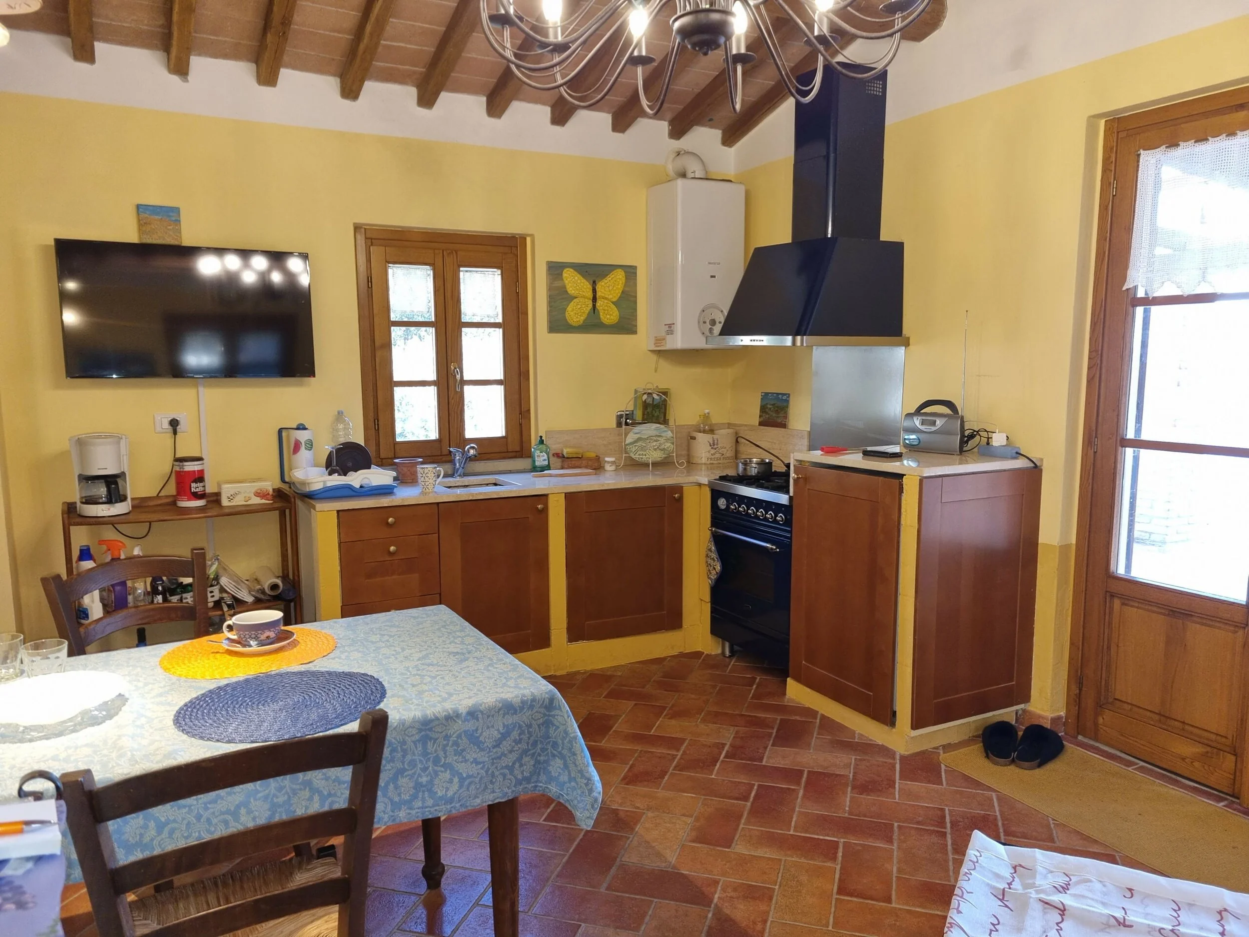 The house was built about 20 years ago, it has a wonderful panoramic loggia where it is possible to admire a stunning view over Pomarance village and over Monterufoli natural reserve; it has double glazed windows, beamed ceilings, LPG heating and mains water.