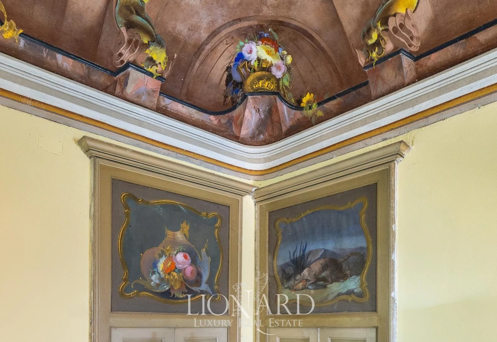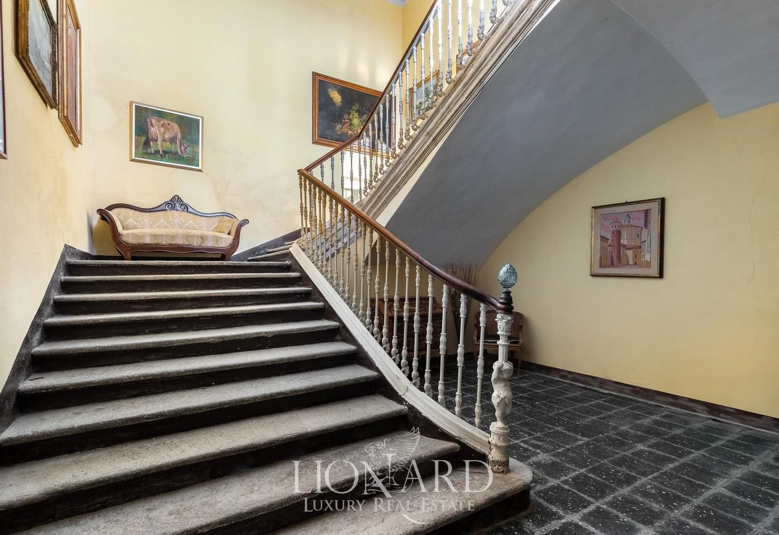 The interior of the castle covers 954 sqm. The main residence comprises approximately 20 rooms, functionally distributed between renovated areas and rooms needing restoration. The renovated areas include two independent flats, both air-conditioned and equipped with all comforts. The living area includes two completely renovated living rooms, cosy and characterised by refined details, and a newly renovated modern kitchen, designed to meet the most demanding requirements. The sleeping area offers six refurbished bedrooms and a 49-sqm master bedroom, an exclusive, air-conditioned environment embellished with precious elements. A striking room is the ballroom, a 175-sqm hall, ideal for hosting events and receptions, which retains its historical charm. In addition, there is an enchanting music room, evoking an atmosphere of times gone by, perfect for moments of relaxation. In terms of facilities, the castle has eight bathrooms, five of which have already been renovated with quality materials and modern finishes. The other spaces offer extraordinary potential for customised interventions, allowing future owners to realise the castle of their dreams.