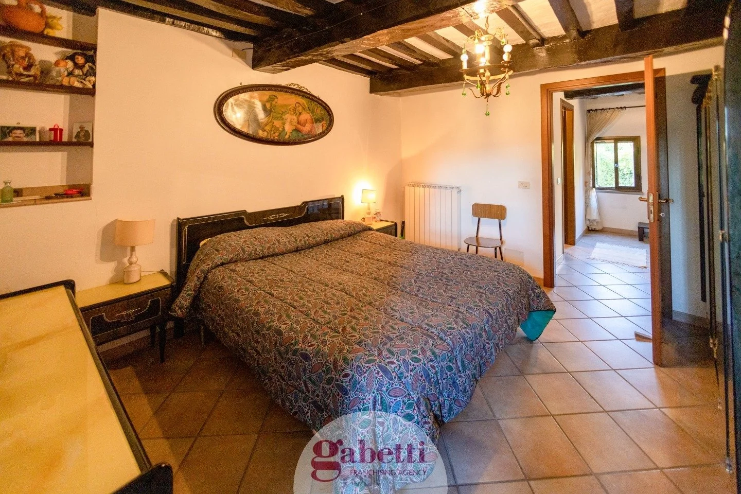 The property is characterized by the presence of wooden beams that give the property a distinctive appearance . The large windows make the rooms bright and offer a beautiful panoramic view of the surrounding hills.