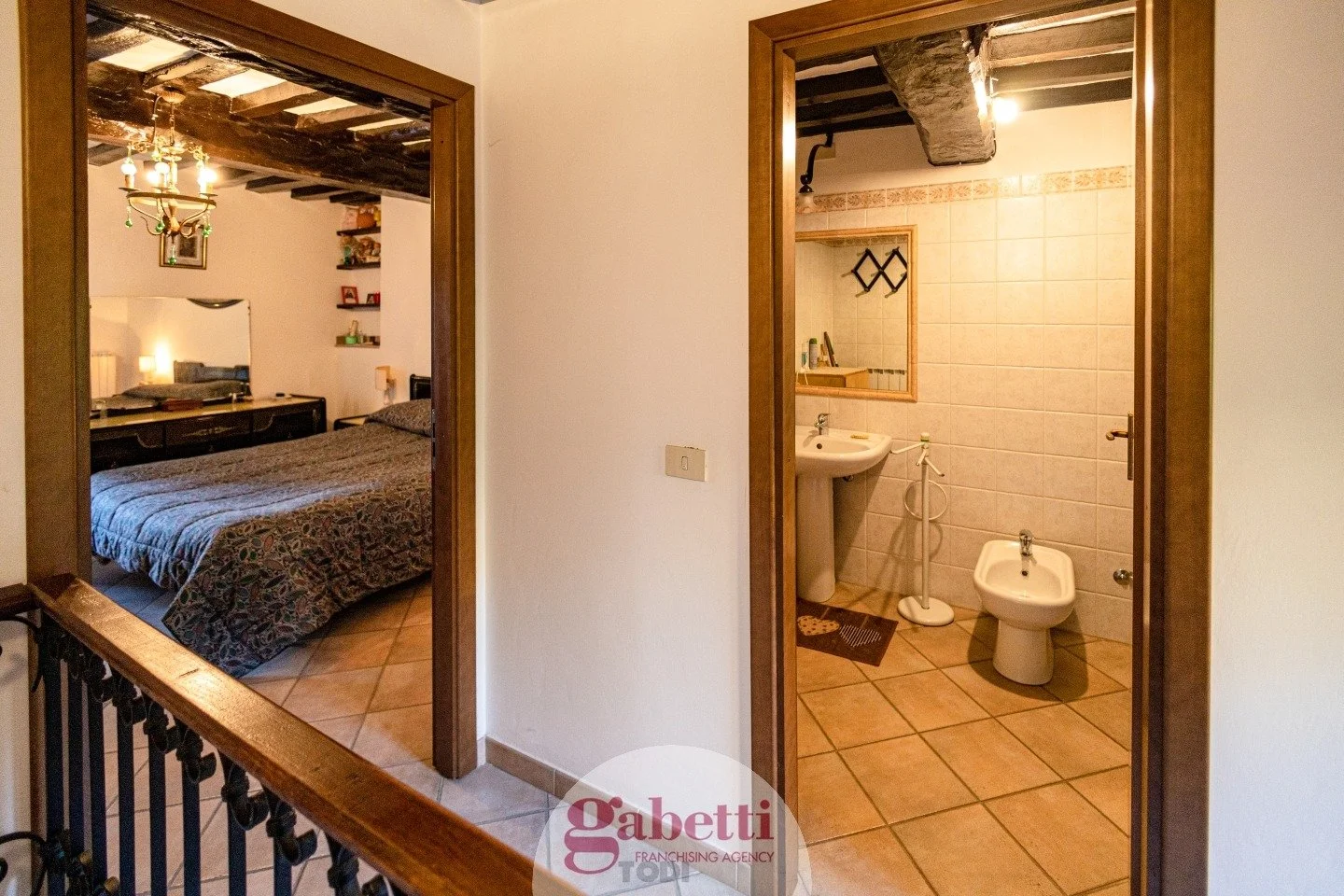 This four-level townhouse combines rustic charm with everyday function. Bright rooms, wooden beams, and sweeping views create a warm, inviting atmosphere. With two bedrooms, a fireplace, tavern space, private courtyard, and a large garage, it offers flexibility for living, relaxing, or working. Just minutes from the E45, it’s a peaceful home base with easy access to Perugia, Spoleto, Orvieto, and beyond.