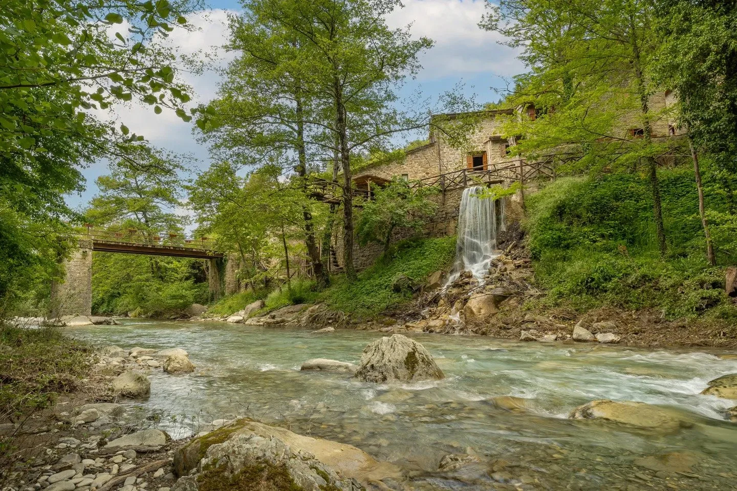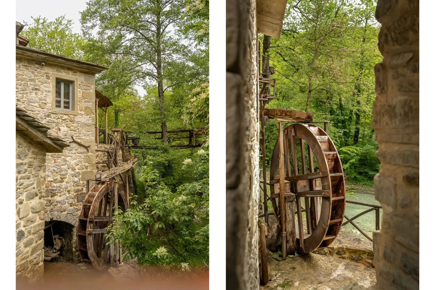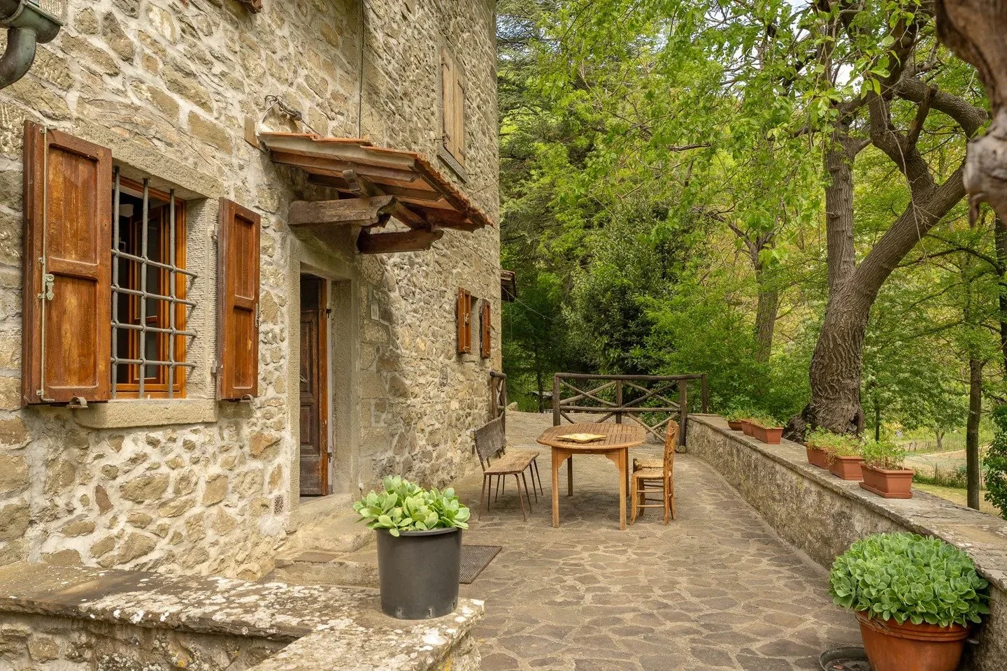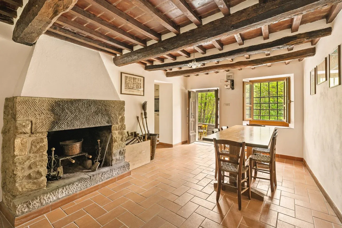 Step into stillness in this beautifully restored stone home set beside an old water mill in the hills of Bibbiena. Surrounded by ancient forests and the gentle rhythm of a nearby river, this two-story retreat balances rustic soul with thoughtful renovation. Inside, original terracotta floors and exposed beams create a grounded warmth, while sunlight shifts across the walls as the day unfolds. Each window offers a moment—views of green hills, water moving below, sky above. Beyond the house, a private garden by the river invites quiet afternoons, and the land itself tells stories through spring-fed woods and open fields. This is a place to slow down and feel connected—to nature, to history, to yourself.