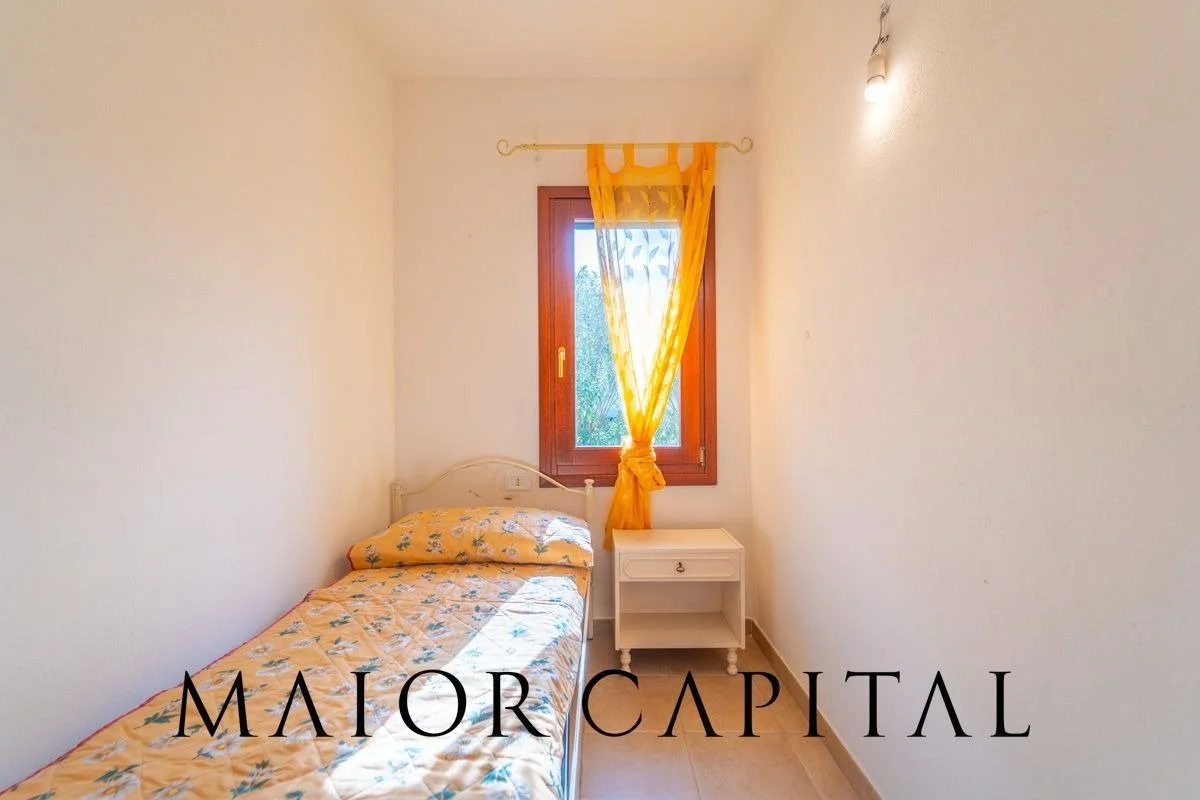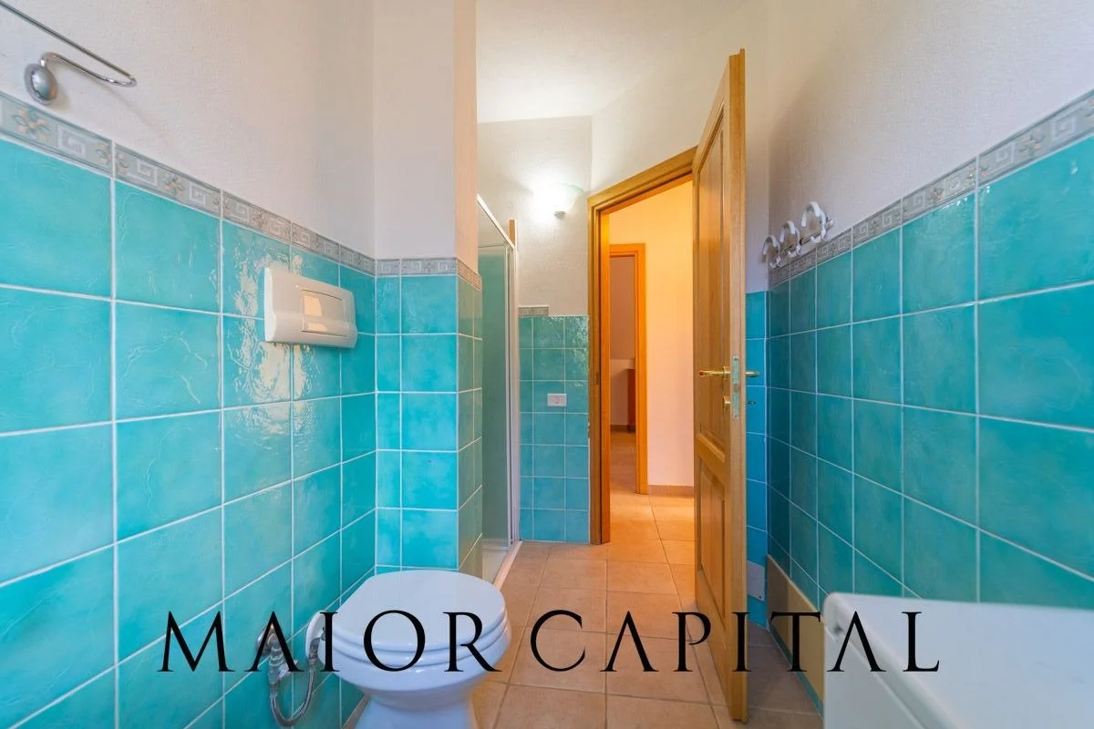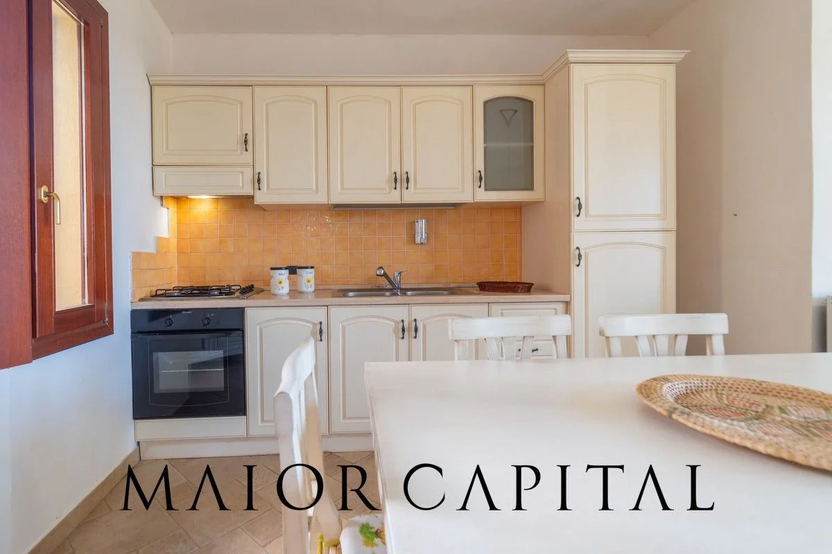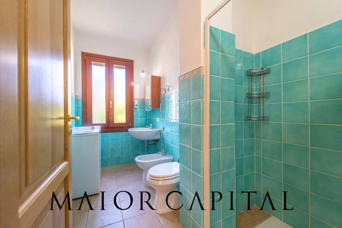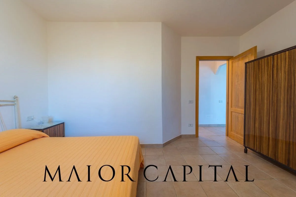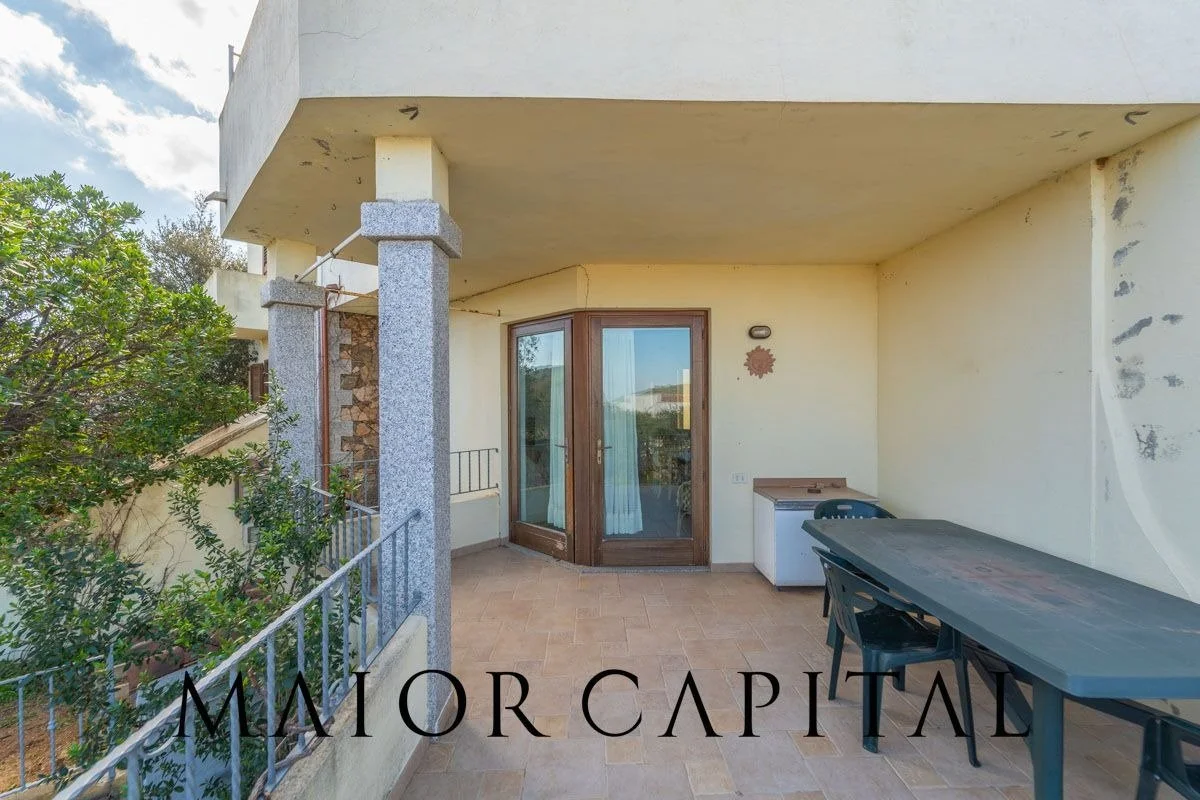 This spacious ground-floor apartment opens out to private gardens on both sides, offering space to unwind, play, or entertain—whatever the day calls for. The covered veranda faces the sea, where golden light filters in and the view becomes part of daily life. Inside, the layout flows easily: a bright living room, generous bedrooms, and even a flexible space currently used as a third. With no shared fees and just minutes from Budoni’s white sand beaches, this home balances peace and proximity in all the right ways.