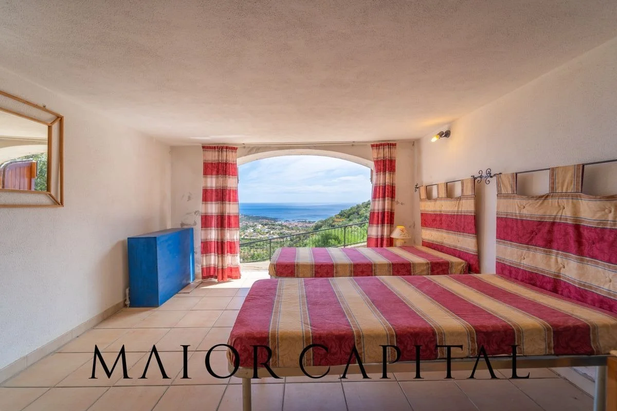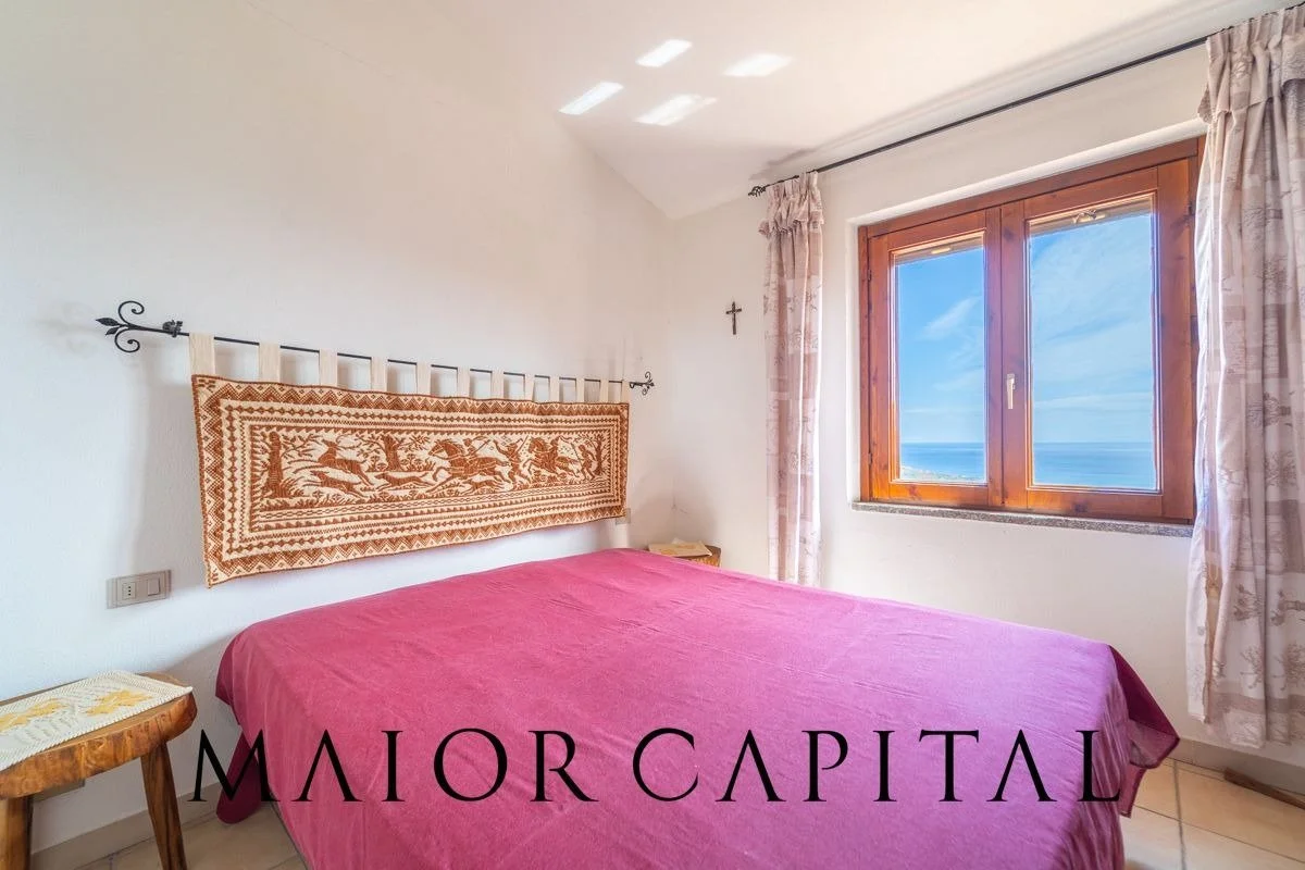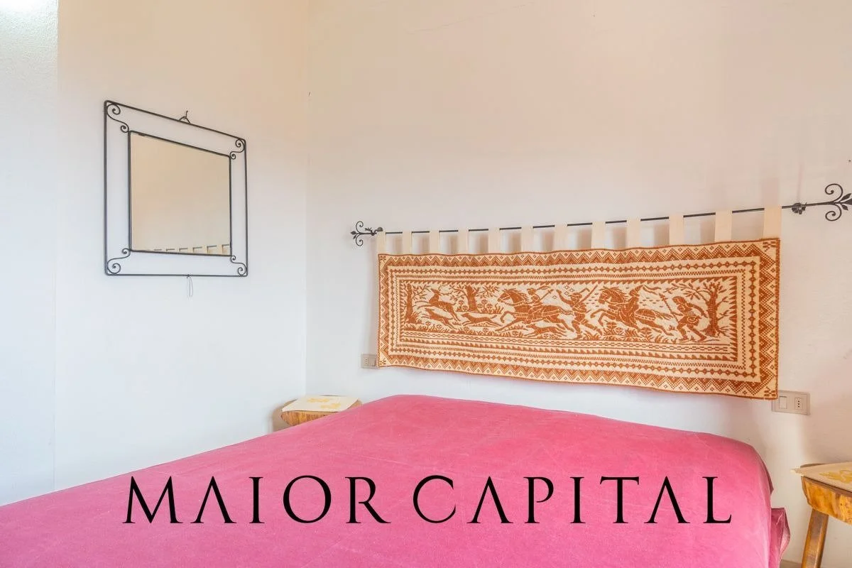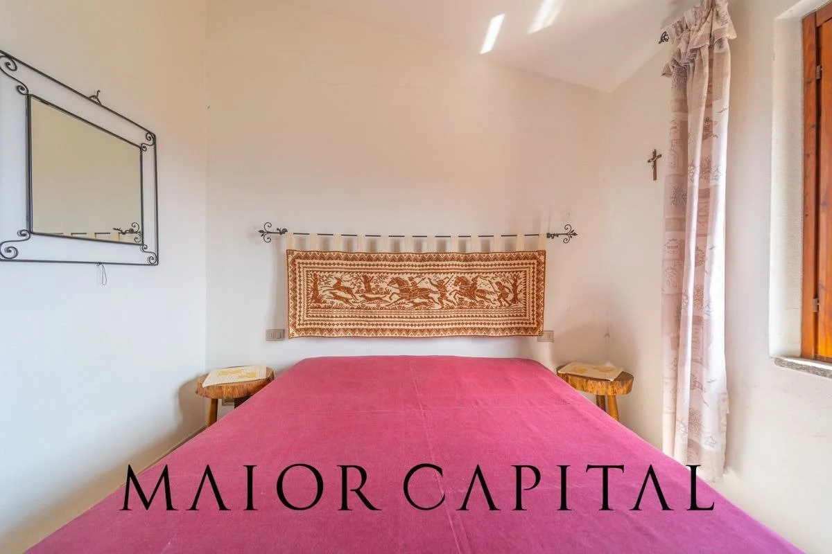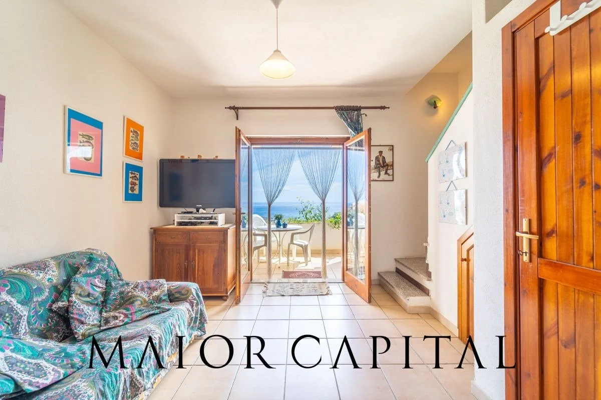 Enjoy breathtaking views of the sea and the small harbour of Porto Ottiolu. This three-level property includes a bright room on the semi-basement floor, a cosy living area with stone fireplace on the mezzanine floor, and two bedrooms on the upper floor with private courtyard.