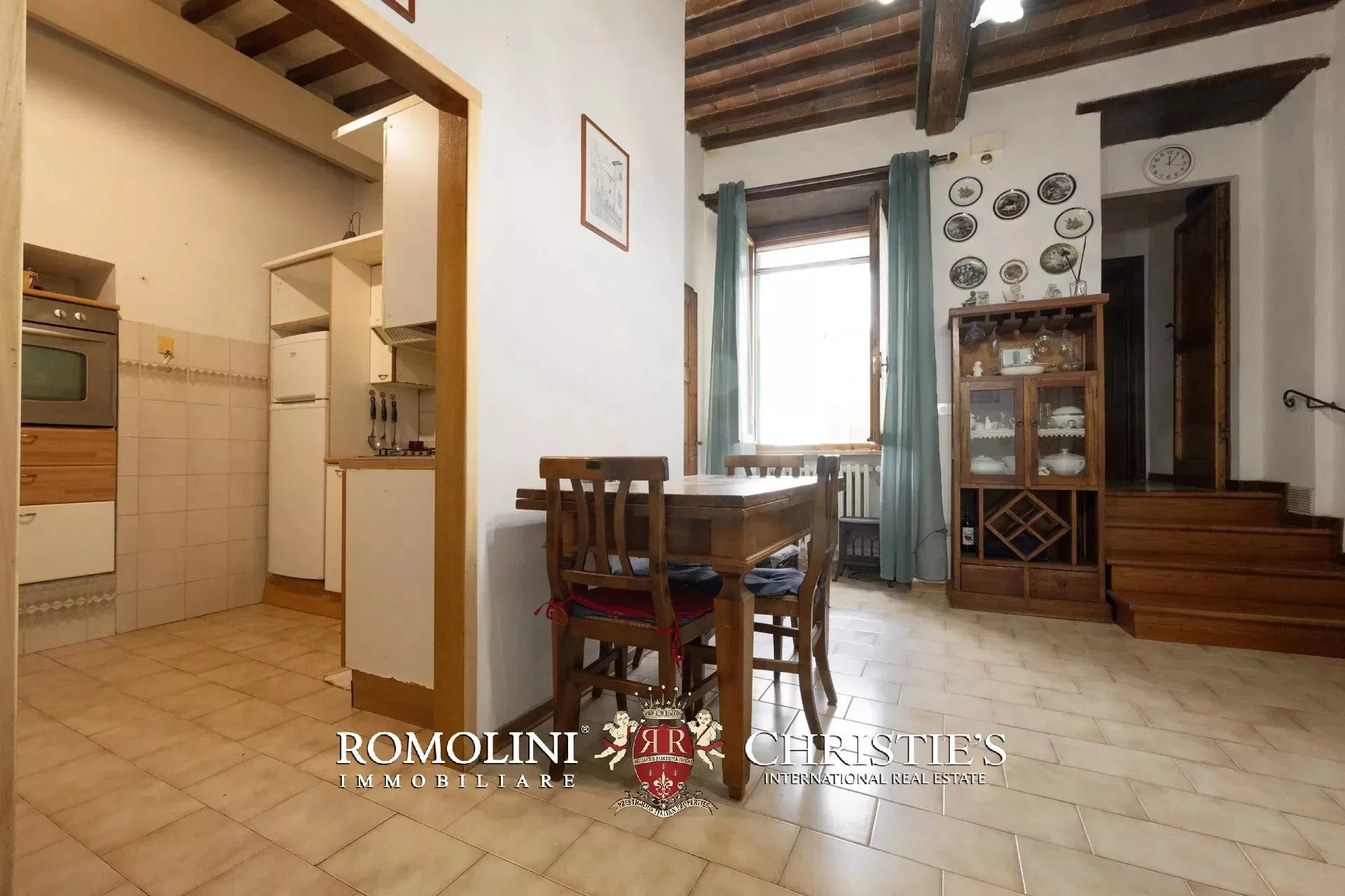 In the vibrant heart of the historic center of Sansepolcro, along the lively Via XX Settembre, this small apartment with independent entrance overlooks the cloister of an elegant period building.