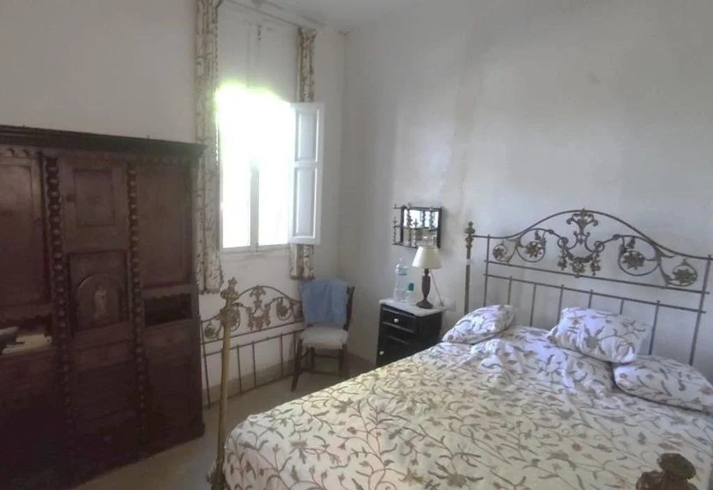 In the north wing there is 1 bedroom, kitchen and 2 bathrooms. On the upper floor, which is accessed by a spiral staircase, and with more than 250m2 there are 2 living rooms, one of them with a fireplace, and 7 more bedrooms, the main one with a fireplace, and 2 bathrooms, as well as a spectacular terrace facing the sea. It also has an auxiliary building of 444.45 m2 on the ground floor and 134.80 m2 on the upper floor. On the ground floor there is an area for a garage, five warehouses, two bedrooms, a living room, a lounge and a kitchen, on the upper floor, a warehouse, two rooms, and a bedroom with a bathroom and an area with a large swimming pool and pergola. The farm also has a citrus grove with a large irrigation pool.
