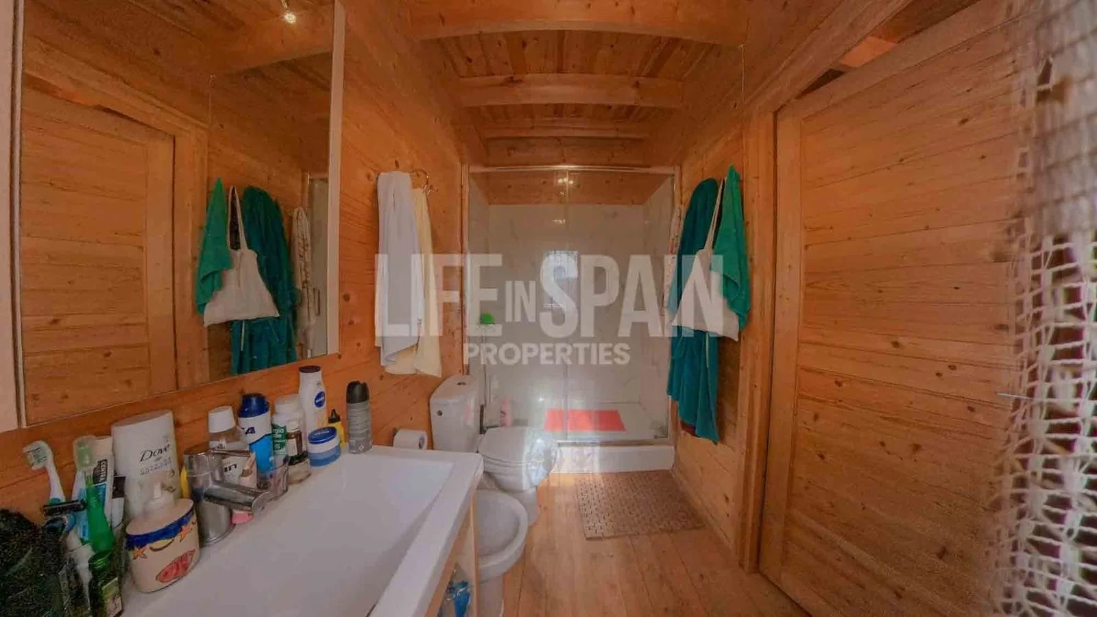 The finca includes two unique houses. The first is an old stone house, full of rustic charm, featuring a cozy living room, a kitchen, and a traditional fireplace. The second house is newly built, with an exterior beautifully decorated with stone, and a warm wooden interior. This modern home offers 2 bedrooms, a spacious bathroom with a large shower, and a cozy living room.