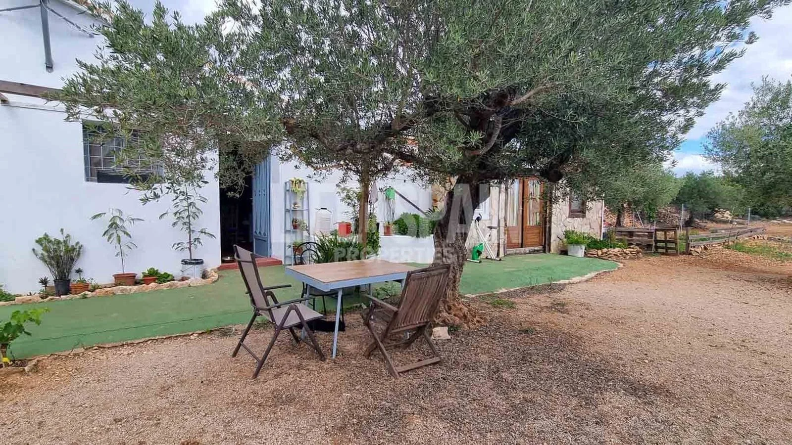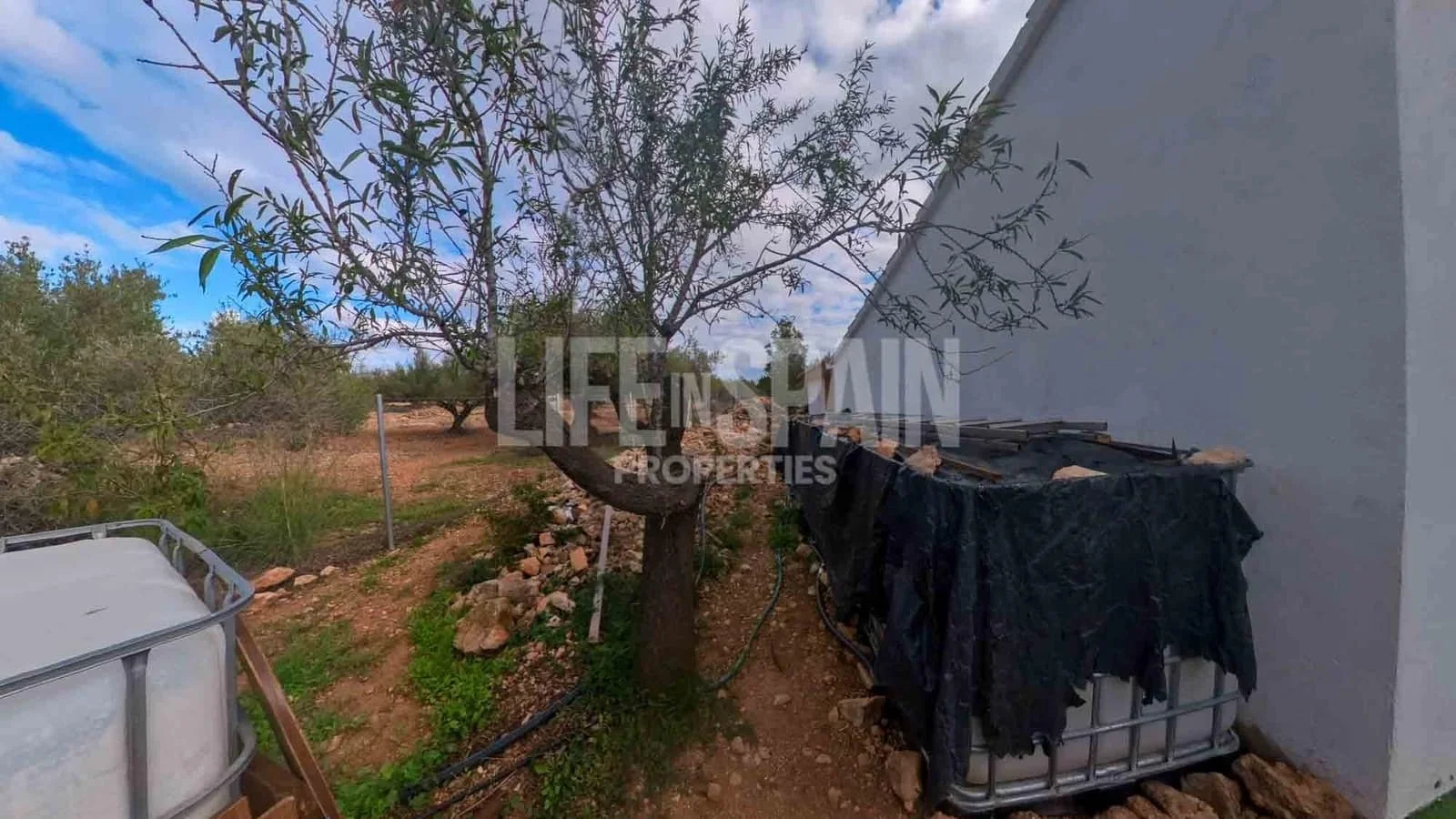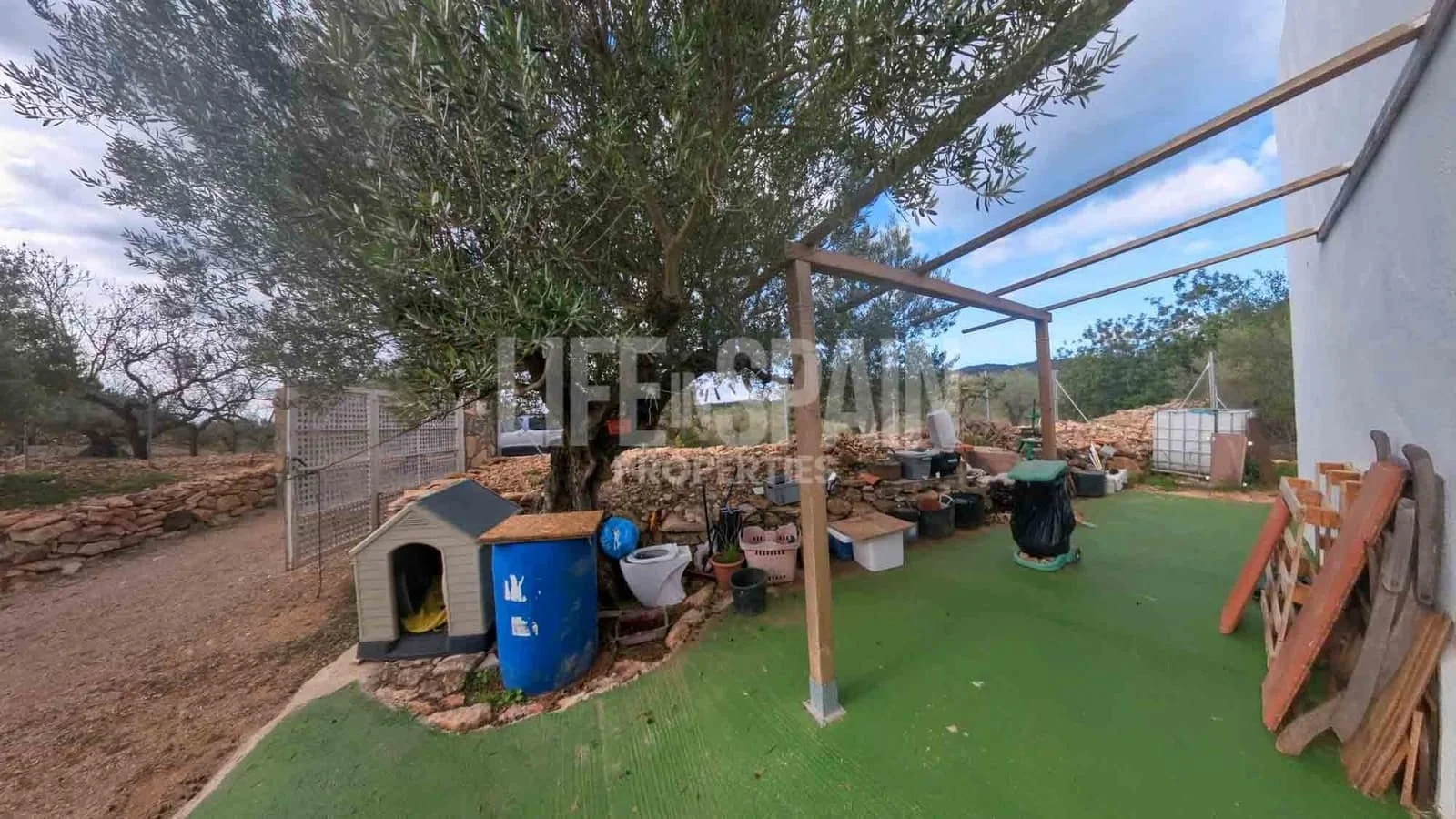 For privacy and safety, the house is surrounded by a metallic fence with a manual gate. The finca also includes a fenced space for a vegetable patch, ready to be restarted, and around 300 olive trees, which produce pesticide-free olive oil each year. Additionally, there are several almond, carob, cherry, peach, and orange trees scattered throughout the property. While there are nearby neighbors, they remain completely out of sight, enhancing the feeling of seclusion.